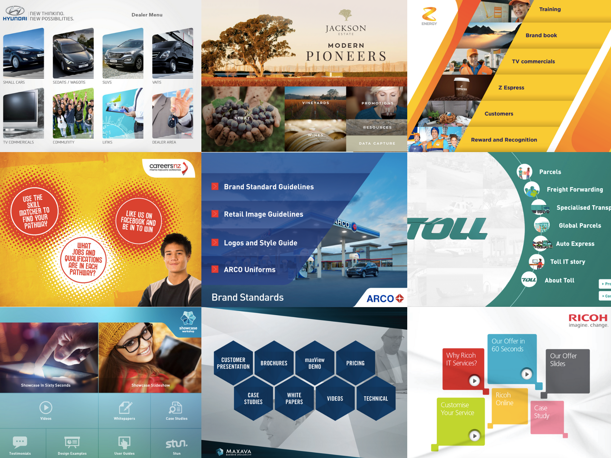 Each square of chocolate on this slide from Whittakers is a hotspot linking to another area, and the 'chocolate as buttons' design runs throughout the whole presentation. This is an amazing example of using existing branding to keep consistency throughout the showcase. It does make me hungry though...