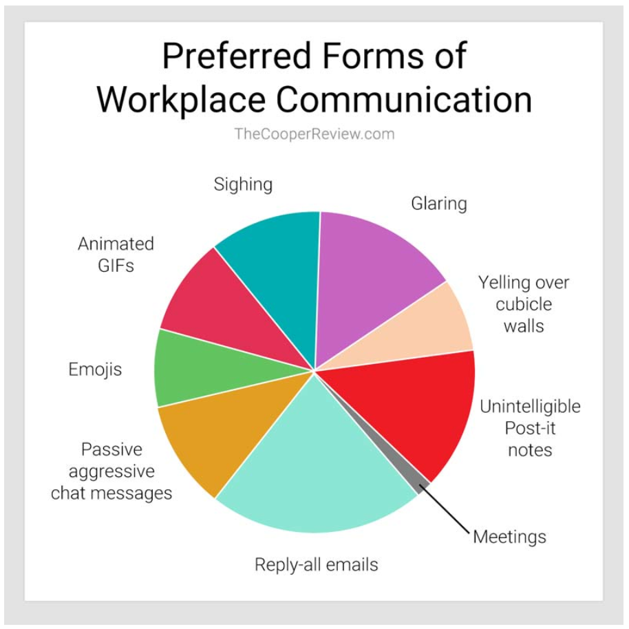 In fact, our team playbook includes an infographic of our preferred forms of workplace communication, and meetings don’t rate highly on the chart: