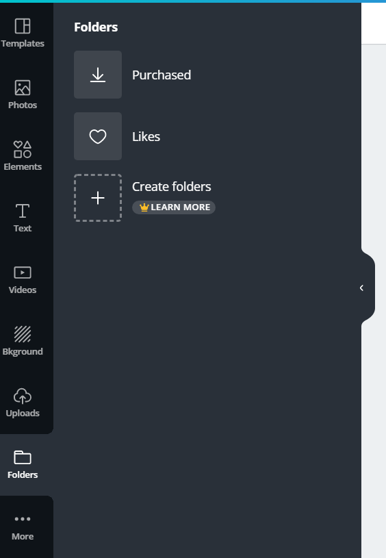 As a cloud-based app, Canva stores a lot of information on its platform. Users can upload their own photos, videos and audio files. And with a paid Canva Pro account, users have access to the Folders Pro feature, which allows them to share and organize designs and images within their Canva account (Free and Standard Canva account users can add up to two folders to organize their content).