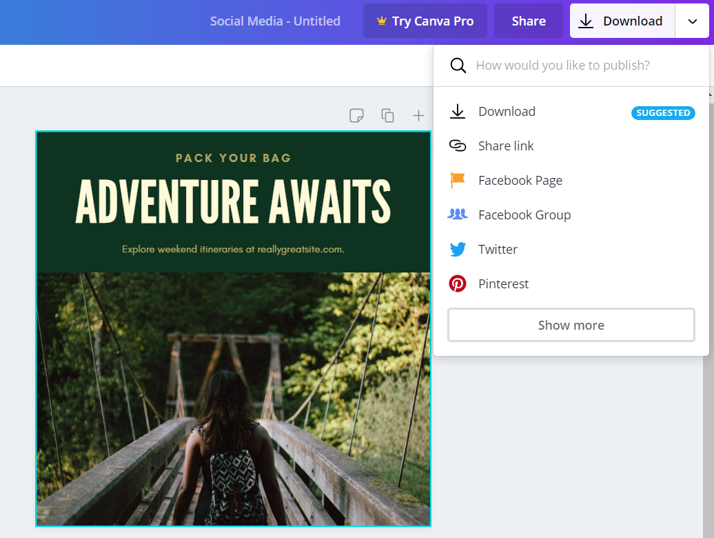 If your focus is creating visually compelling assets that stand alone and are published to different eco-systems — posted to social media, or printed out for distribution at a trade show, or to collate with other things inside Showcase Workshop (hint, hint) — then Canva is what you need. You can create amazing collateral with very little design experience, and share it quickly and widely.