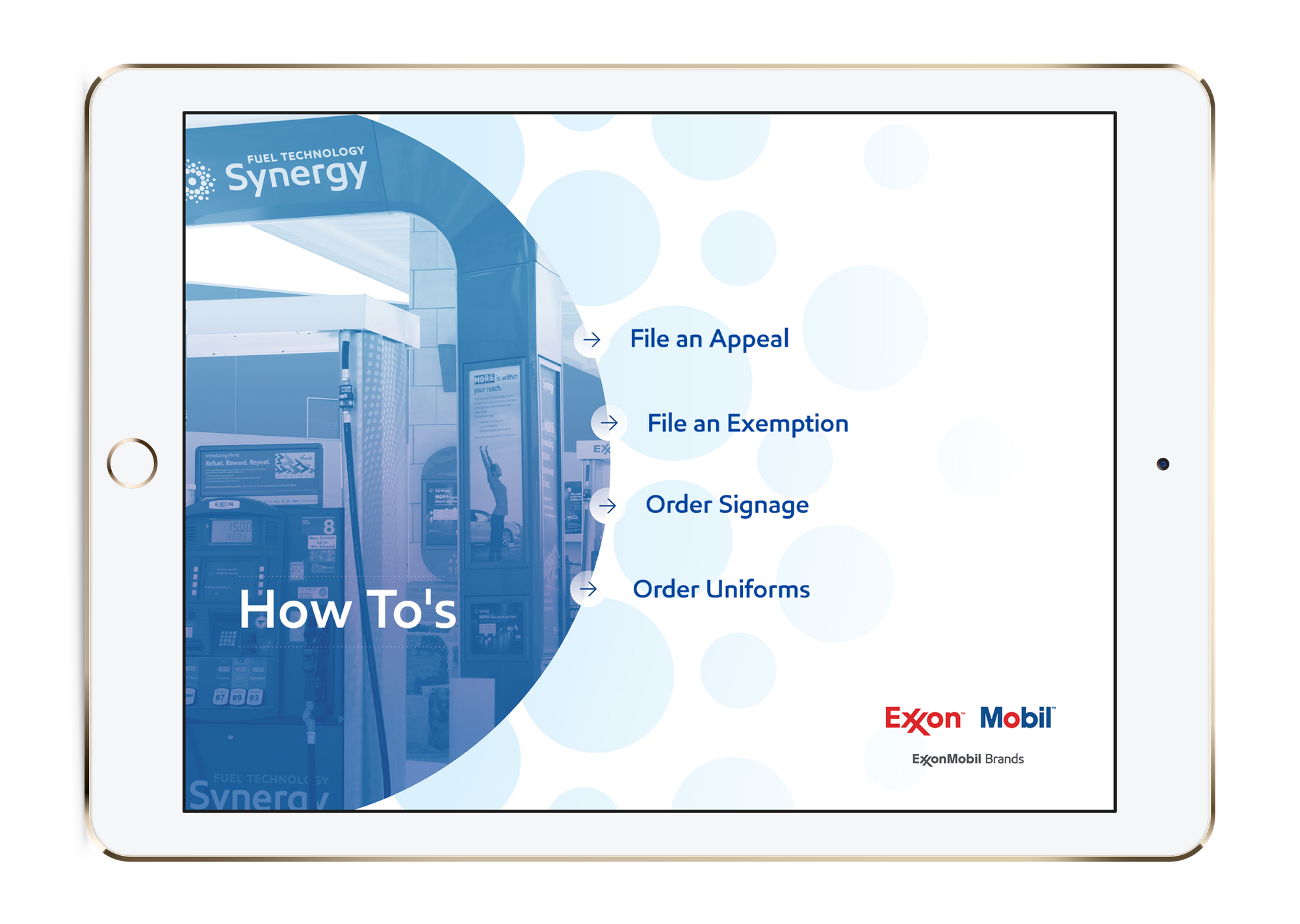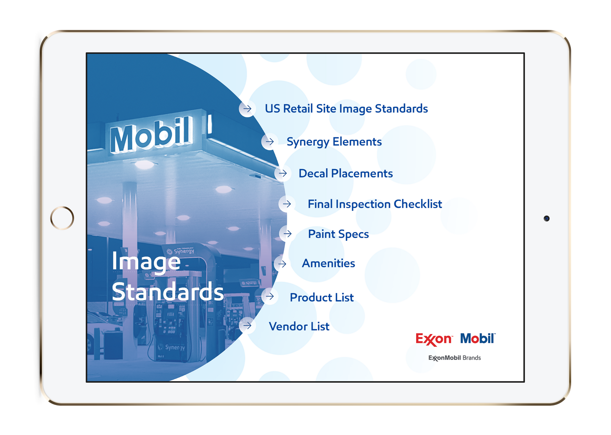 In 2017, we helped Andeavor's ExxonMobil brand team with a set of beautiful showcase designs complete with a stylish intro video that played every time a user opened a showcase.
