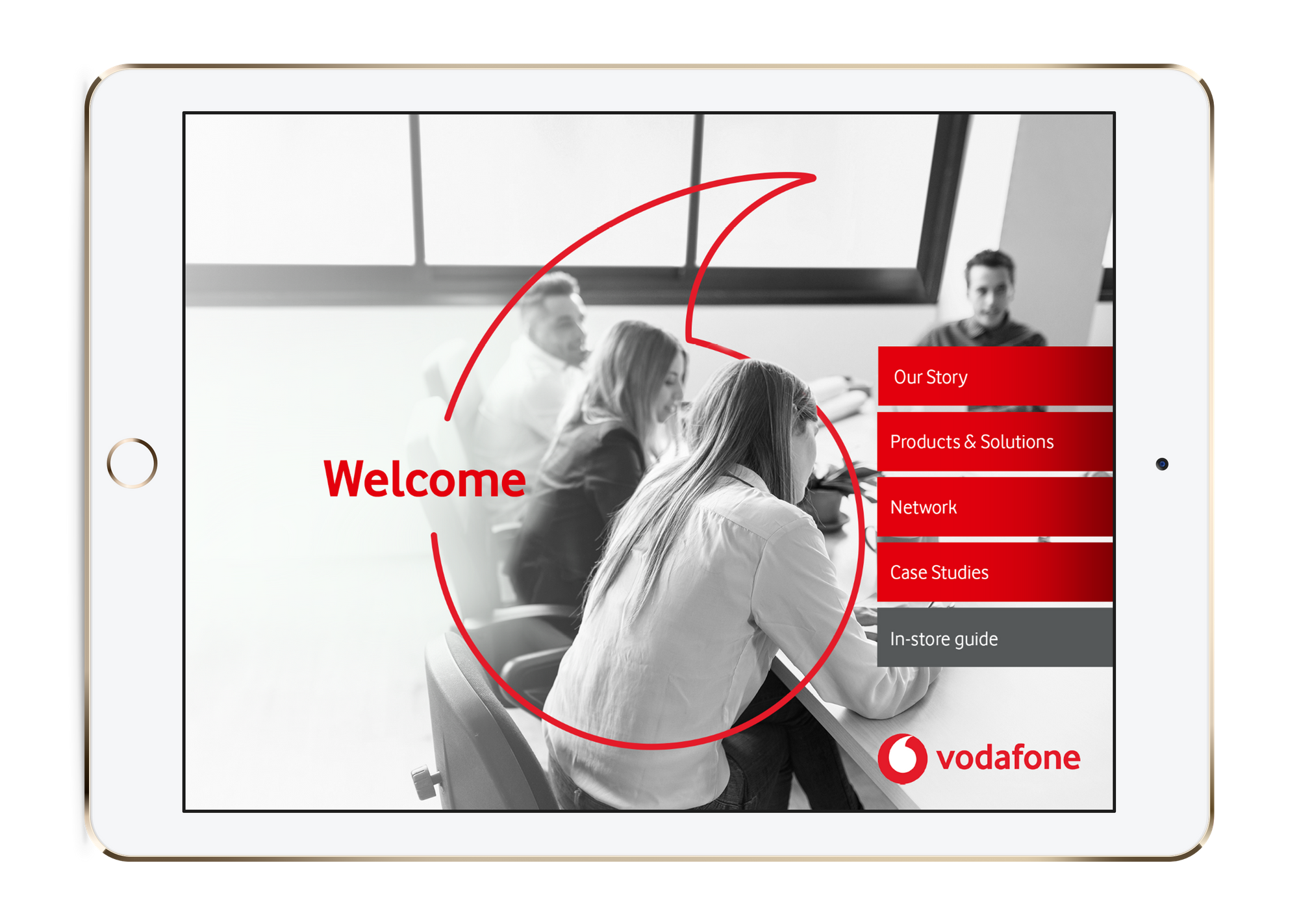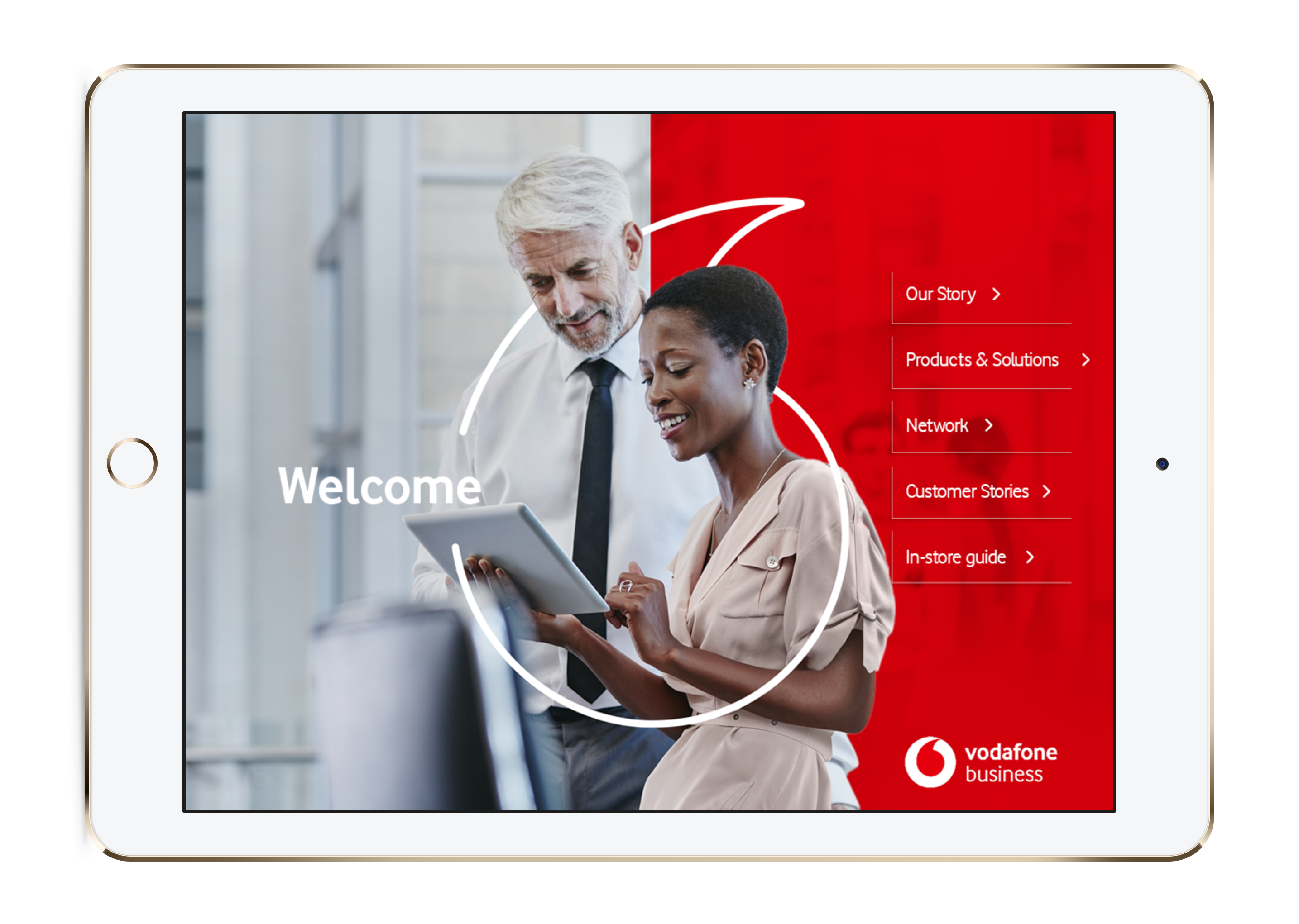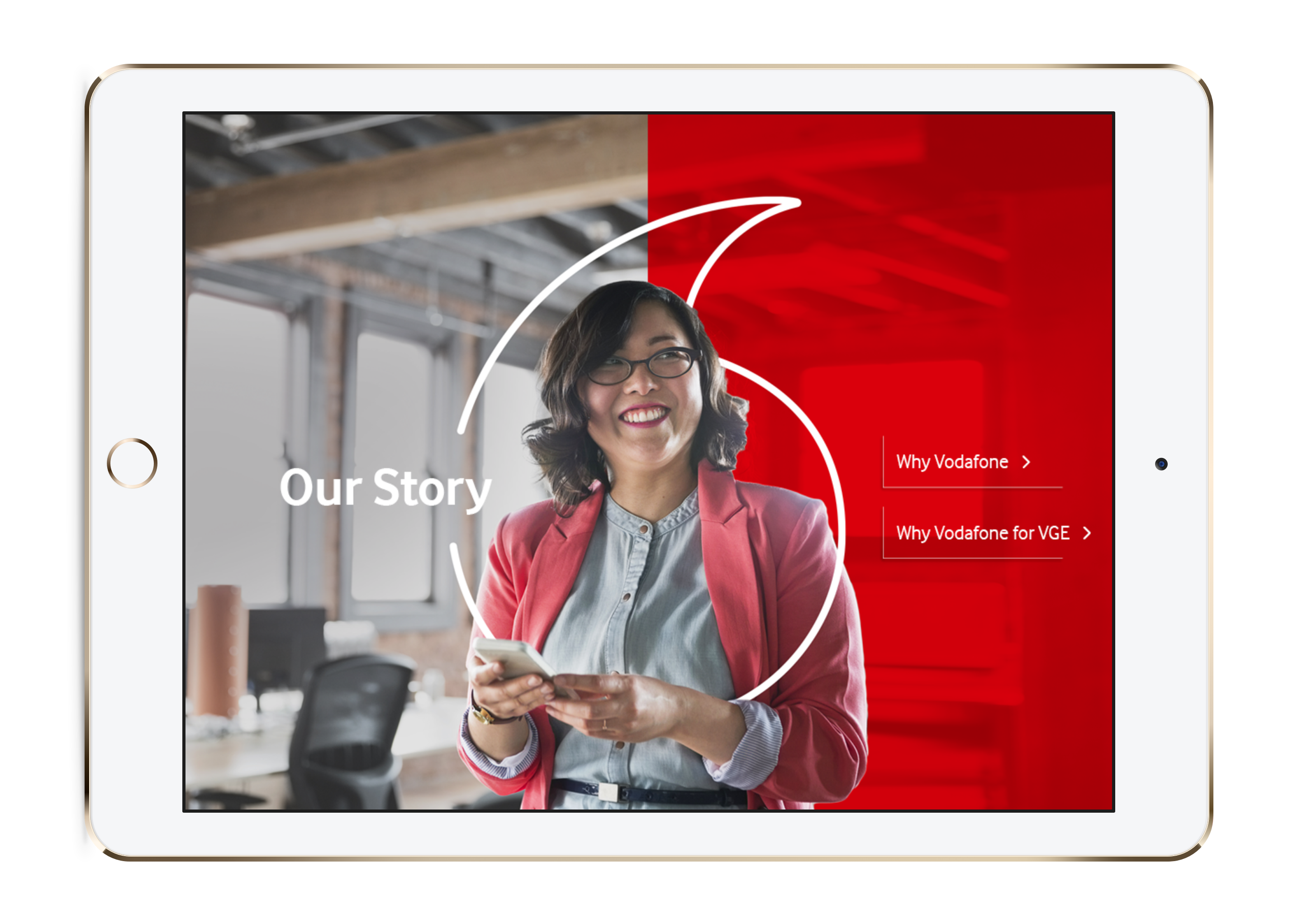 Vodafones's rebrand not only included moving from a black and white style to brightly coloured slides - it also included a bunch of brand new photography for their showcases. They were able to give us access to their online digital asset management system so that our designers could source pre-approved images directly, rather than having to go back and forth with the Vodafone team.