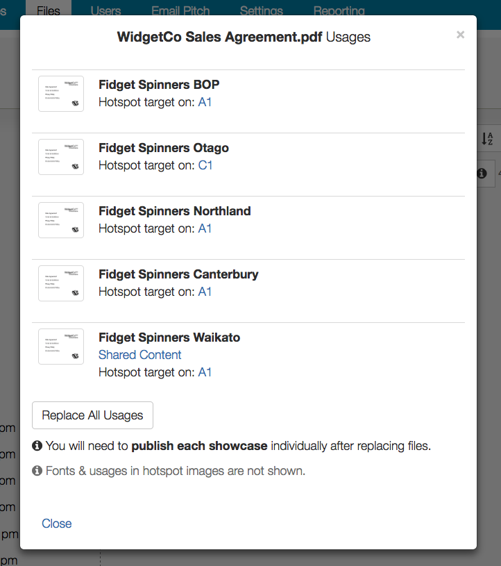 The bigger change is that we've also made it possible to replace a file across multiple different showcases all at once. We're calling it "Replace All Usages", and here's how it works.