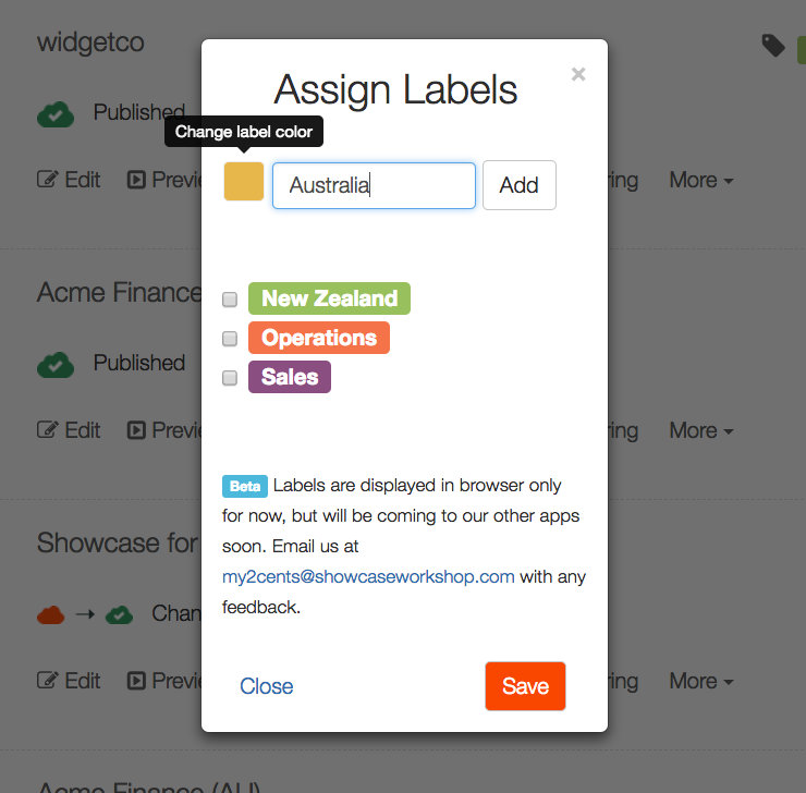 Labels are here! We've given you the ability to apply "Labels" to your showcases.