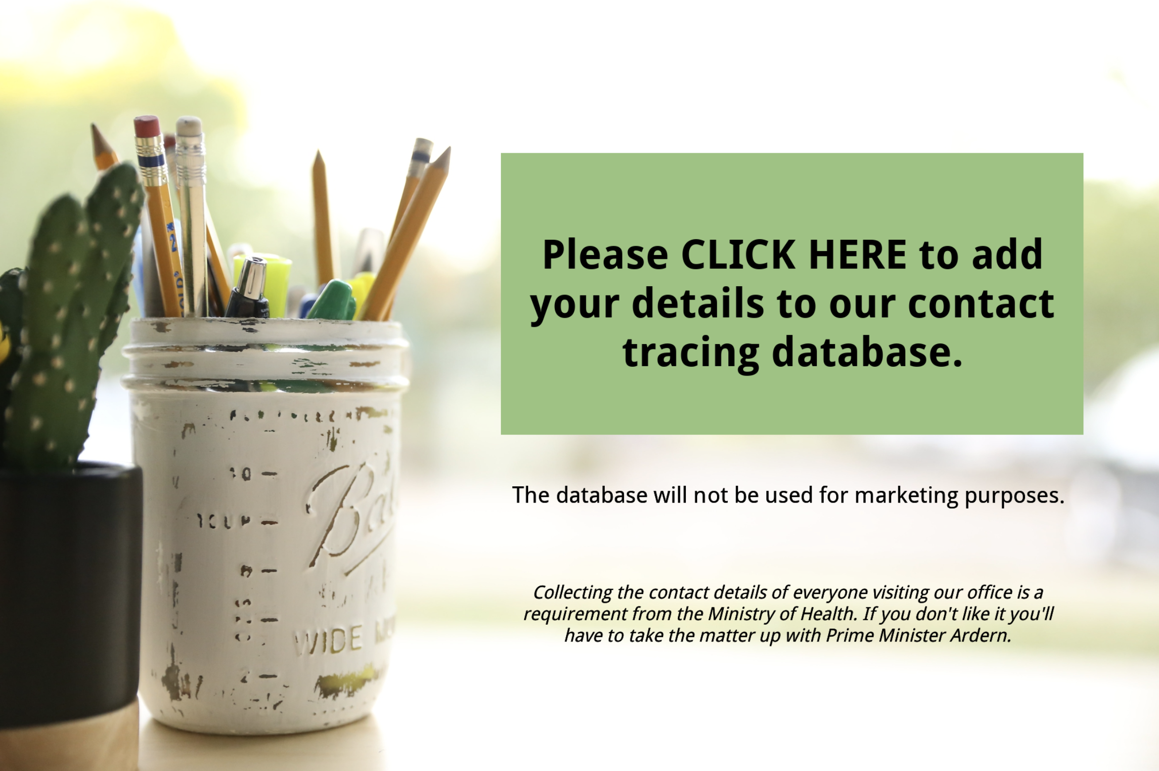 If your business needs to do the same we're making this simple data collection form available to all new and existing customers (including anyone on the 14-day free trial) so you can collect details from visitors to your business.