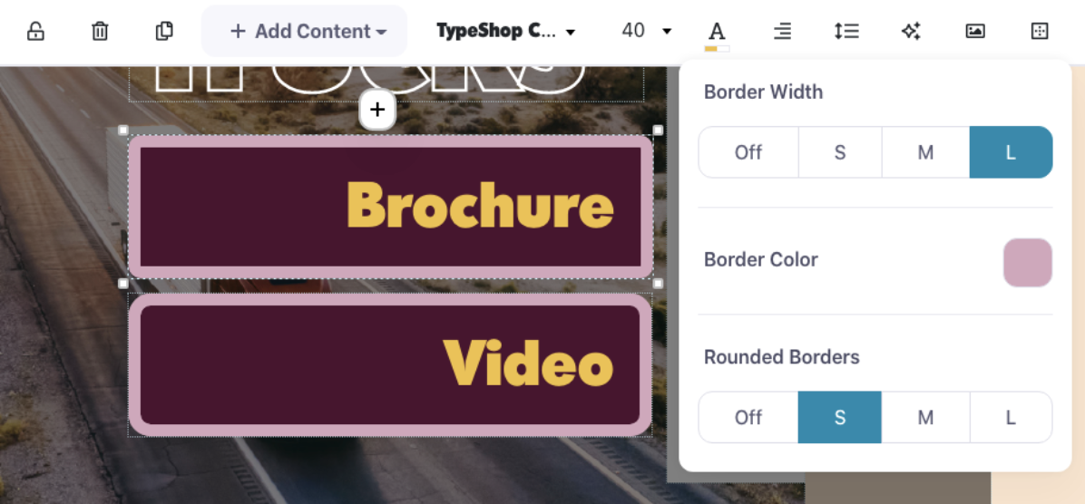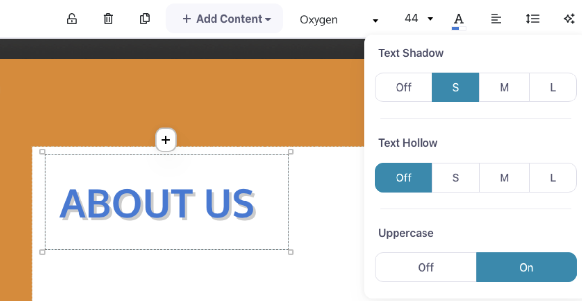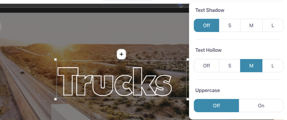 This is where you can add a drop shadow (in three different sizes!) to your text. You can also set your text to be uppercase or lowercase, without having to retype it.