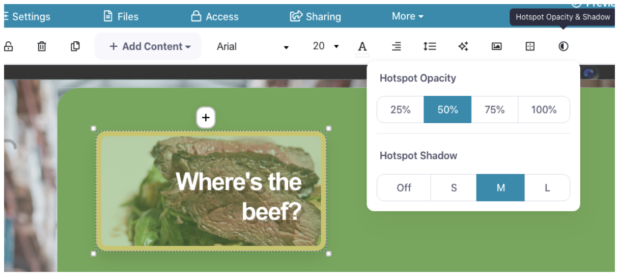 Wait, didn’t we already talk about shadows? Yes, we did. Text shadows are an option under 'Text Effects'. But you can also separately add a shadow to a hotspot!