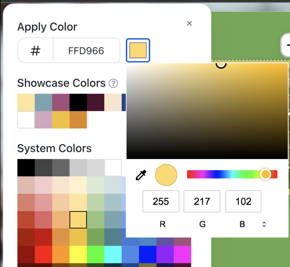 The system colors will still appear in the grid, and you still have the option to directly enter a hex value. But now you can also choose a color from your computer system’s color picker as well.