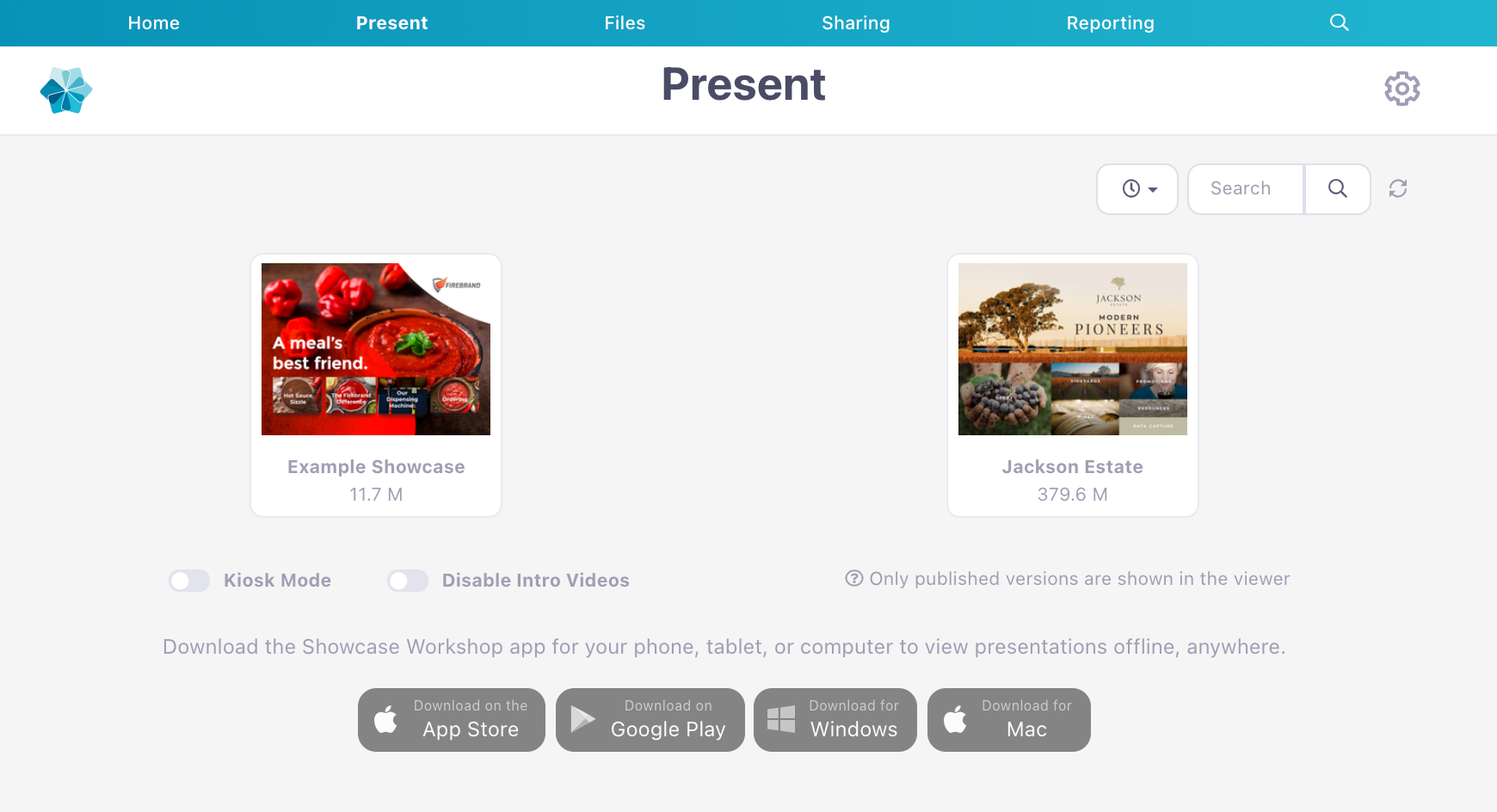 Admins and Editors will already be familiar with this, because it’s what’s already visible on the Home tab. But now Viewers and Managers also have the convenience of searching for a presentation or rearranging the sort order!