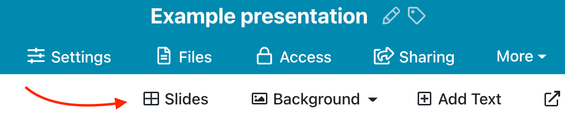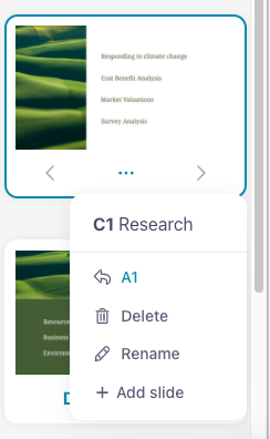 By default, slides are named after the file name of whatever background image you’re using. You can edit the slide name by clicking the three dots next to the name/number.