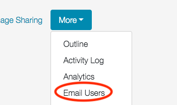 Once you've made any changes - or even if you haven't! - my big recommendation is to use the 'Email Users' feature which is also accessible from that handy 'More' dropdown. This is a very quick and easy way to email all users of a showcase at once without remembering specifically who they all are.