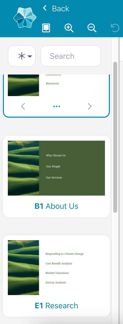 Think of the first slide in your presentation as the jumping-off point for your sales team and prospect. Rather than a single, scrollable page with all your content, this first page will contain links to your files, images, videos, or even external websites.