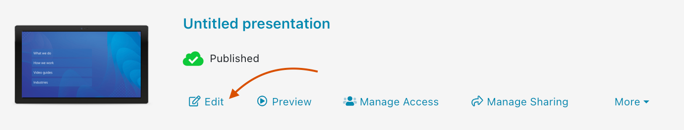 Once your new presentation has generated, click ‘Edit’ to start customizing it. You can also click the title or thumbnail; they’ll both take you to the same place (our flash Editor).