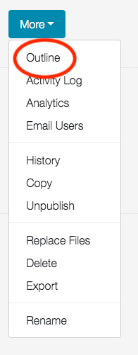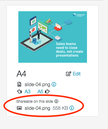 We now show you a list of the files shareable on all slides, and files shareable on each individual slide, from the outline page. Reminder - you can check the Outline of a showcase by clicking the More dropdown.