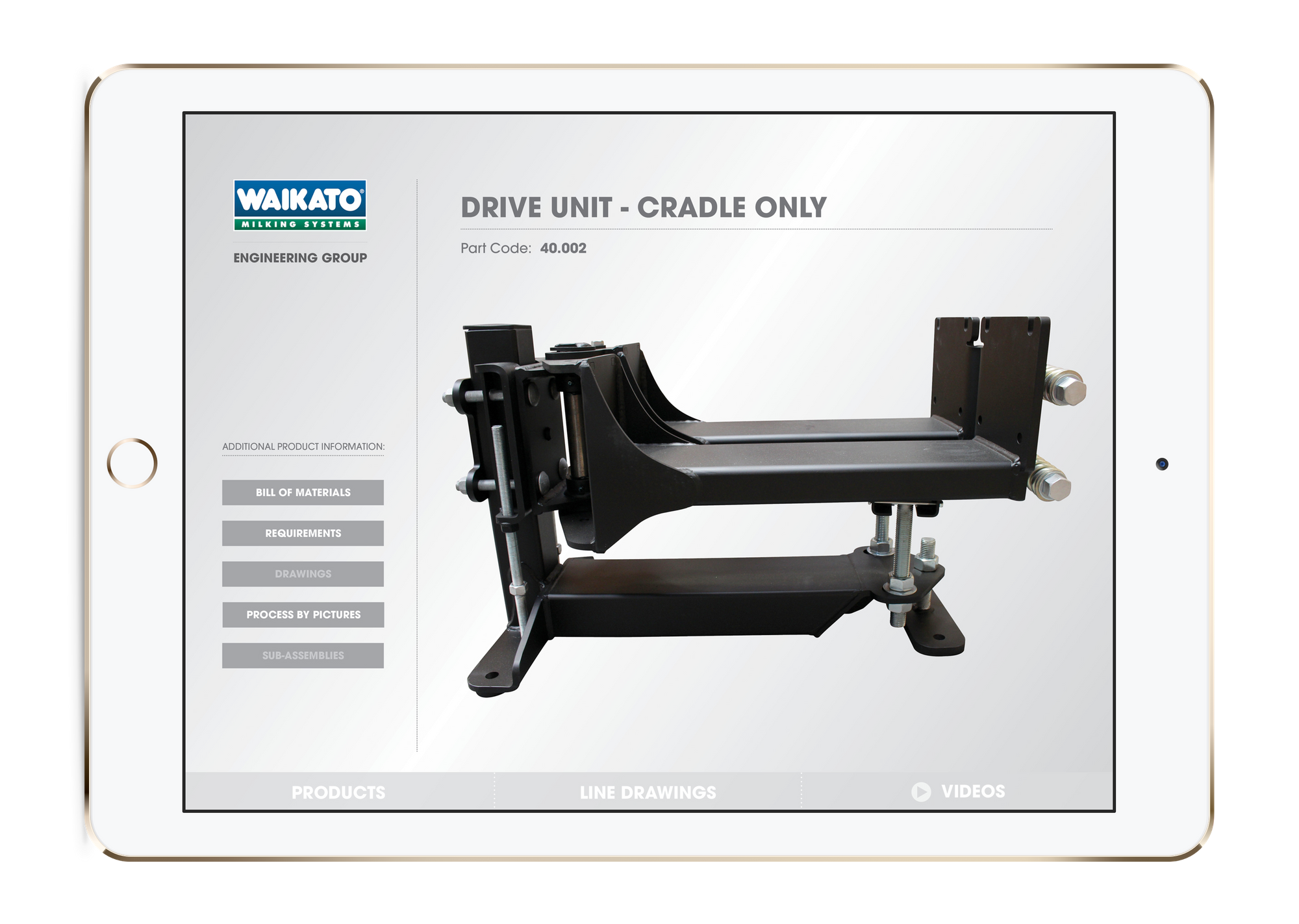 WMS have built something they call their Manufacturing Resource App (MRA), and built a version of the app for each manufacturing division at the company headquarters in Hamilton, New Zealand. Within each app are detailed, step-by-step instructions — complete with pictures, bill of materials, list of parts and components, and tool requirements — for how to manufacture Waikato Milking Systems products.
