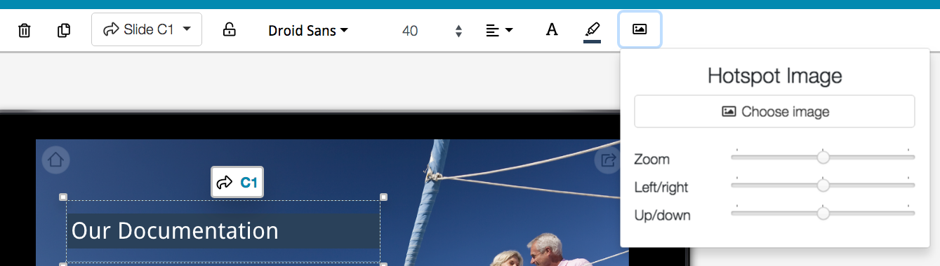 That contextual behaviour hasn't changed, so now with the controls along the top, when you select a hotspot, those controls will change: