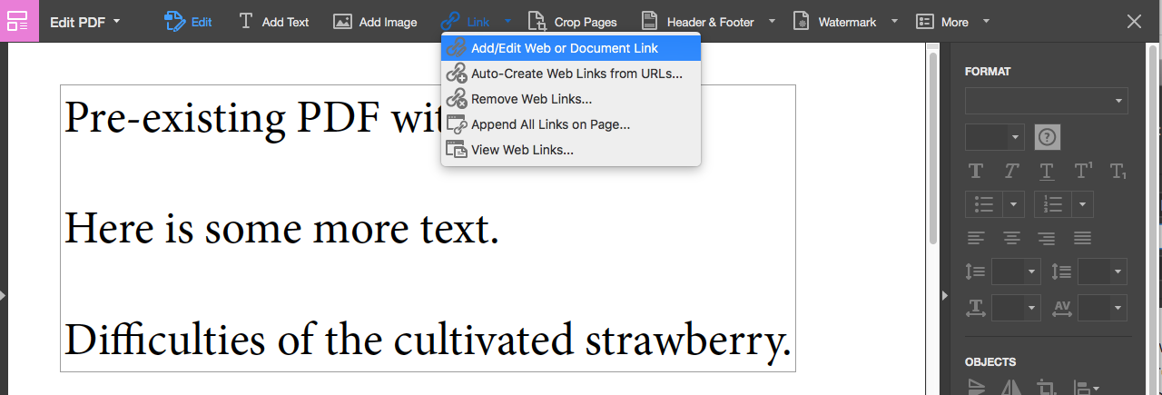 Note that I am here referring to Adobe Acrobat Pro, which has advanced editing capabilities, and not Adobe Acrobat Reader which is a more passive viewing app for PDFs. The following steps are not available in the Reader app.