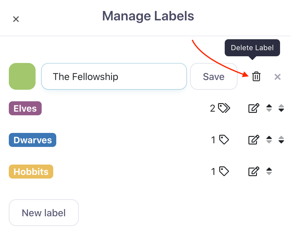 This icon will change to a trashcan icon when you click it, allowing you to delete any Label that you no longer need.