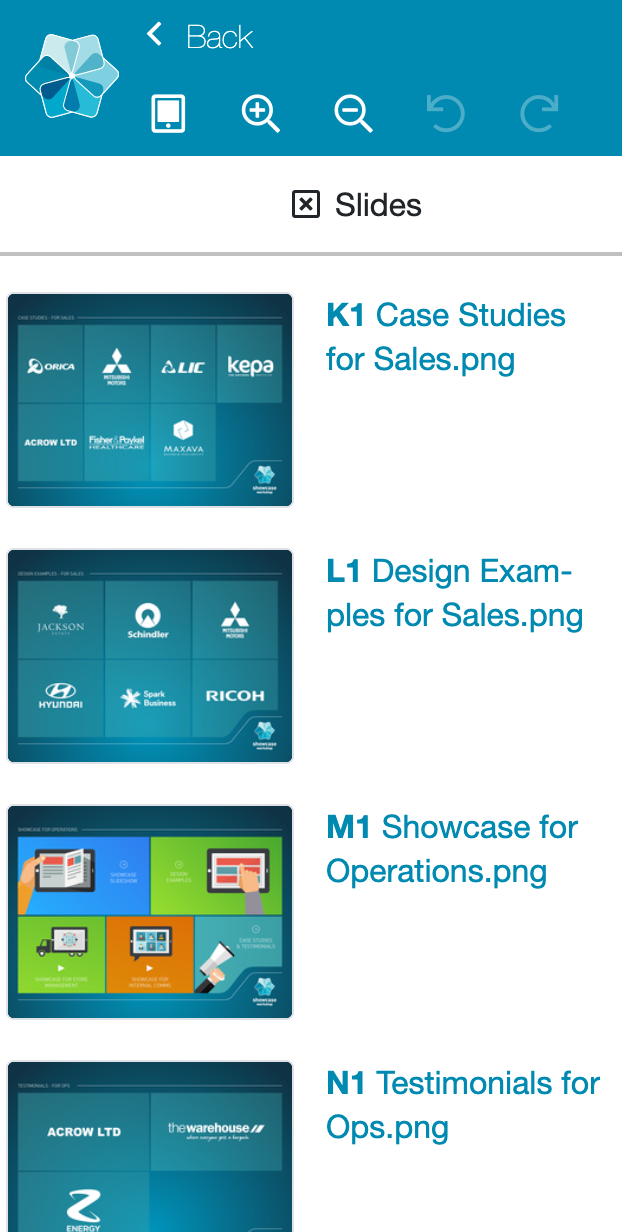 Tap the magnifying glass in this toolbar and you'll be whisked away to a neat grid of all the slides in that presentation. There's a handy Search bar at the top of the page so you can find the relevant slide and amaze your client with your efficiency.