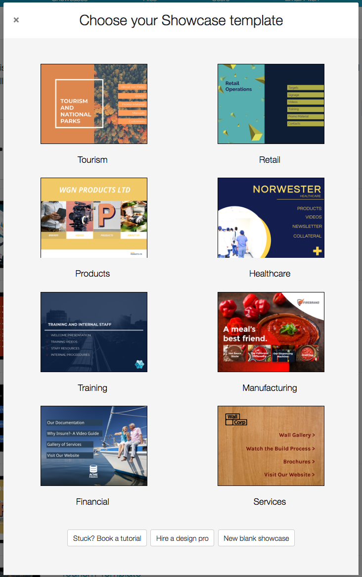 When you click the 'New showcase from template' button, you will now be shown 8 options.