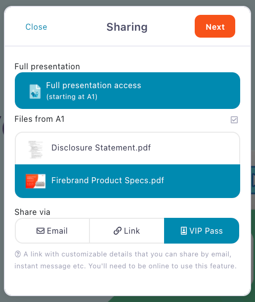 VIP Pass is our latest feature to help you get your sales presentations out into the world. It's currently only available on the web version of Showcase Workshop but we'll be rolling it out in the apps over the next couple of weeks. Watch this space!